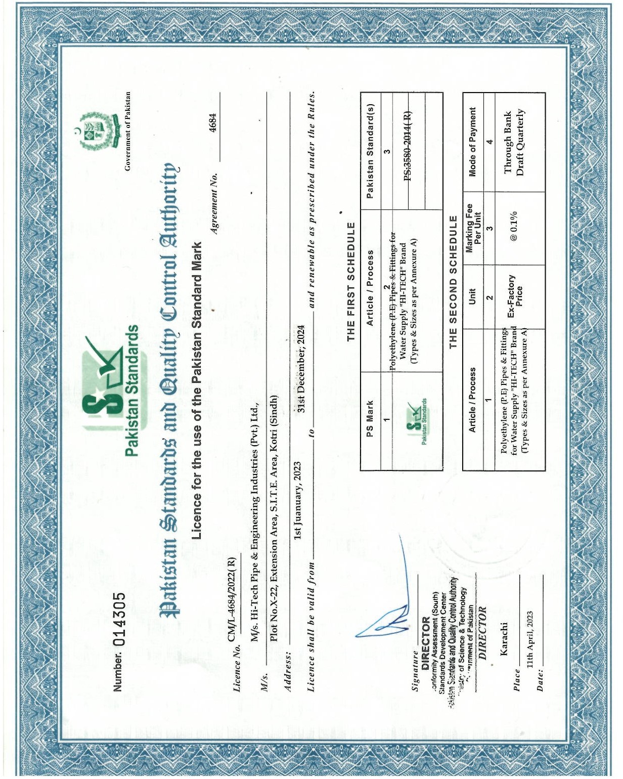 | UKAS Management Systems, ISO 9001:2015 | Pakistan Standard Institute (PSI) PS 3580:1997 |